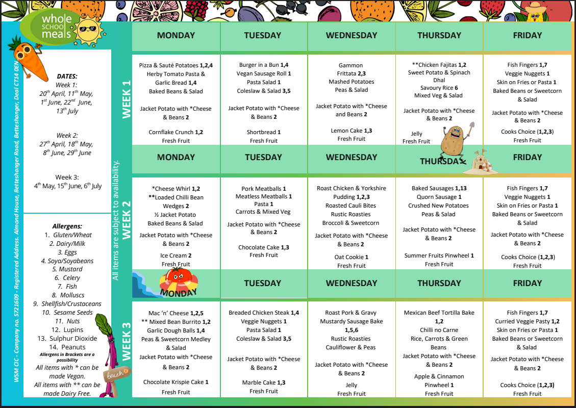 Dinner Menu April 2026 to October 2026